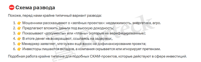 Примером нечестной инвестиционной компании, что намерена только собирать с пользователей деньги и, точно не будет никому платить, является проект GreenArt Invest. Данную организацию запустили в 2024 году, а ее основатели говорят о работе проекта с 2022 года и, это первый обман.